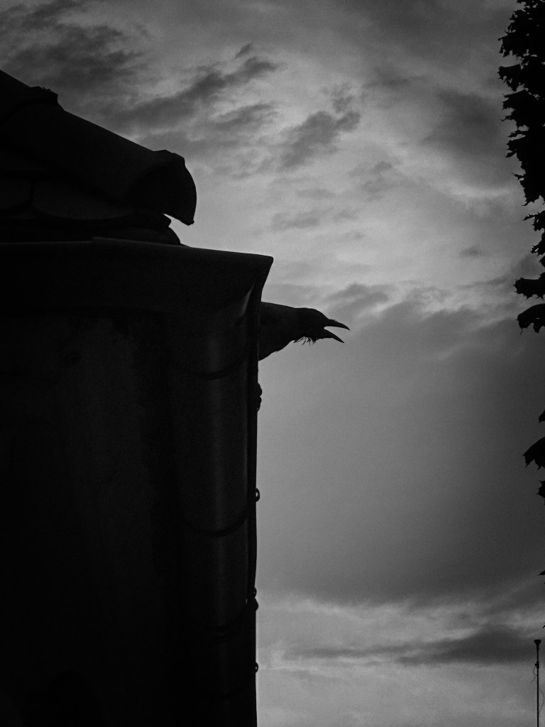 A szürreális pillanat után lassan megfordulva, gondolataimba mélyedve bandukoltam (volna) tovább, amikoris ismét elrikkantotta magát az a bizonyos fekete eresz-lakó…