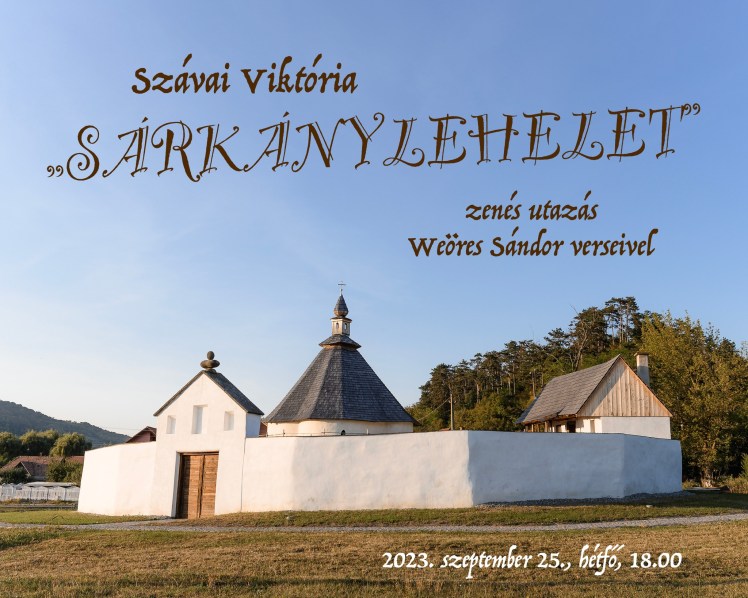 “Sárkánylehelet” címmel Szávai Viktória előadását hallgathatjuk meg, mely mindig az adott térhez és a résztvevőkhöz idomul. A Jászai Mari-díjas színésznő Weöres különleges, ritmussal, élettel teli versein keresztül beszél magáról, a körülöttünk lévő jelenségekről, saját szerepeinkről, nemiségről, a világ kézzel fogható és láthatatlan dolgairól, melyhez Lénárt Beáta lesz a zenei segítőtársa, aki csodálatos nyelvesdob kísérettel színesíti az estét. Őszi napéjegyenlőség időkörnyezetében zengessük meg szívünket és lelkünket
